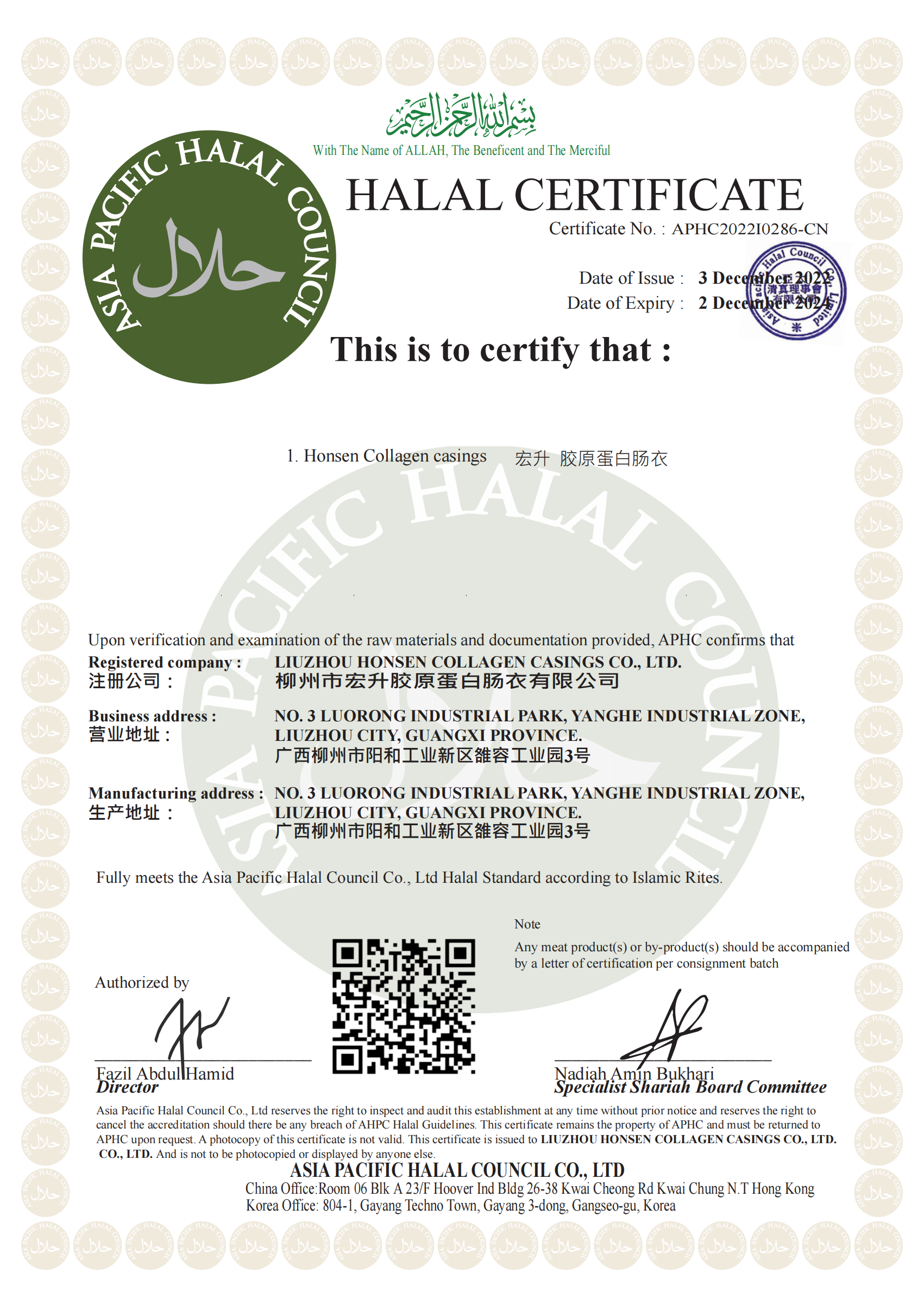 HALAL CERTIFICATE 认证