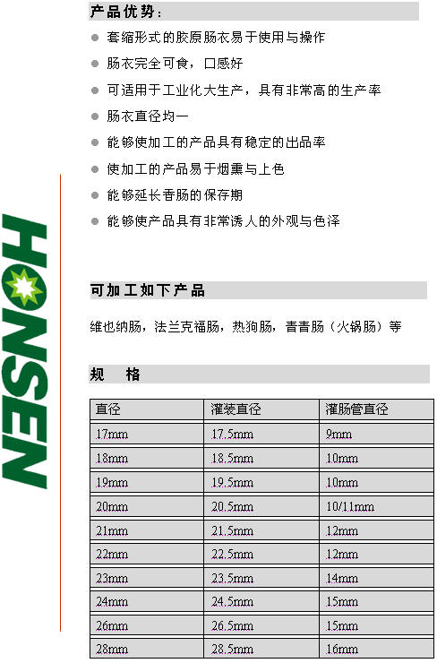 此类胶原肠衣为宏升公司专门为烟熏类产品所设计。